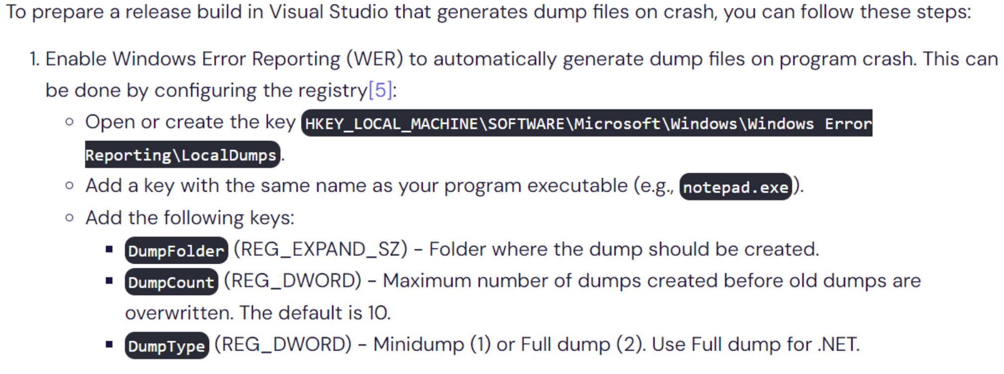 Hierzu verwenden wir die Dump-Funktion in Windows Error Reporting.