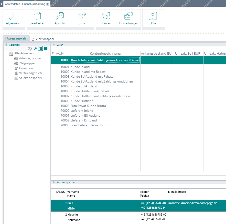 In der vorgelagerten Auswahl der Adressstammdaten, bzw. der Personenkonten haben Sie seit Rev.