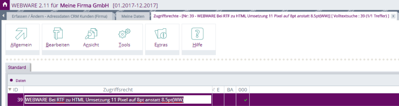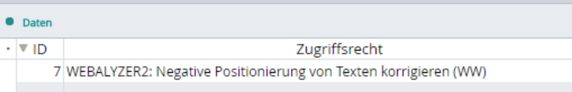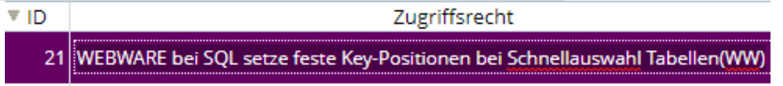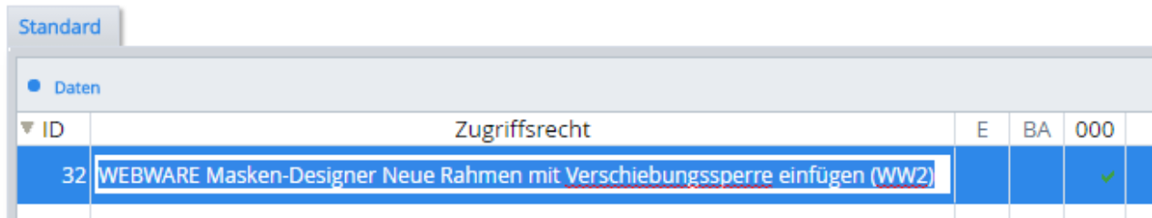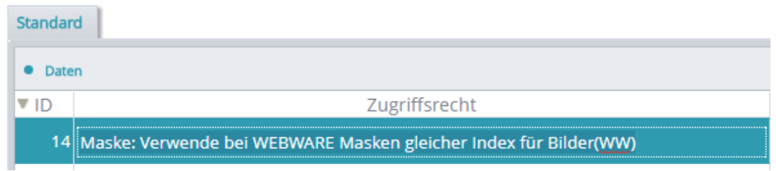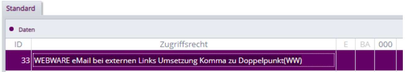 Hierzu wurde das bestehende Zugriffsrecht WEBWARE, 38 um 3 weitere Zugriffsrechte erweitert.