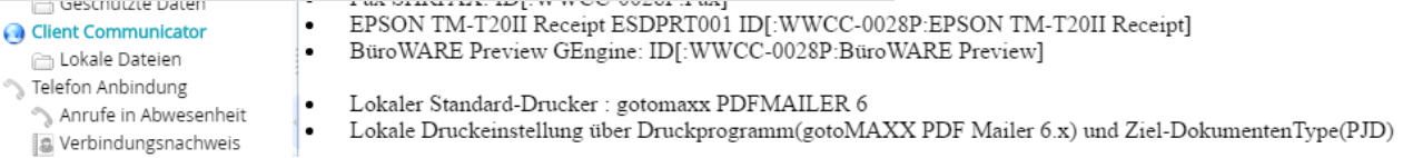 Die Einschränkung, dass die Festlegung von Client-Druckern, welche über einen WEBWARE Client-Communicator angebunden sind, nur mit Hilfe der genauen Vorgabe des Drucker-Schlüssels möglich war (Bspl: :WWCC-0028-P:gotomaxx PDFMAILER) wird durch zwei neue Zugriffsrechte beseitigt..Â