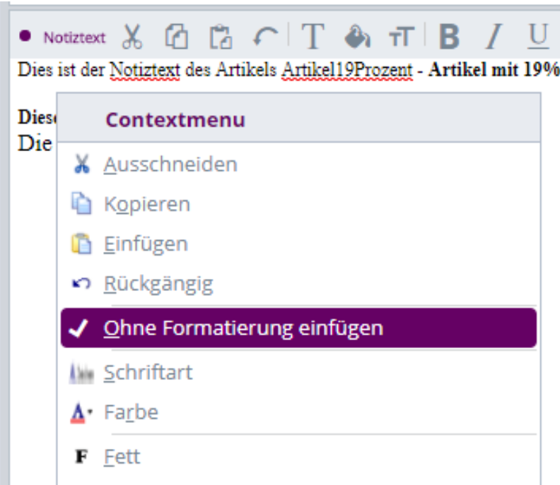 Ist die Option „Ohne Formatierung einfügen“ aktiviert, so wird der Text direkt im Browser-Editor in Text gewandelt und eingefügt. Ist diese Option nicht aktiv, so wird wie bisher der formatierte Text eingetragen und in der WEBWARE Anwendung weiter verarbeitet. …