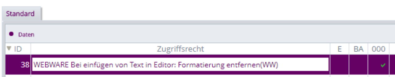 Es ist nun mit Hilfe eines neuen Zugriffsrecht möglich,  das Einfügen von formatierten Texten als reinen Text in den Langtext-Editoren festzulegen.Â
