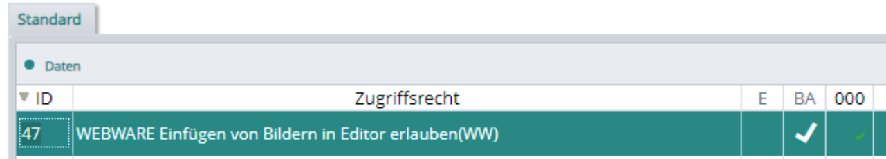 Mit diesem Zugriffsrecht ist das Einfügen von PNG-Bildern in HTML-RTF-Langtexteditoren steuerbar.