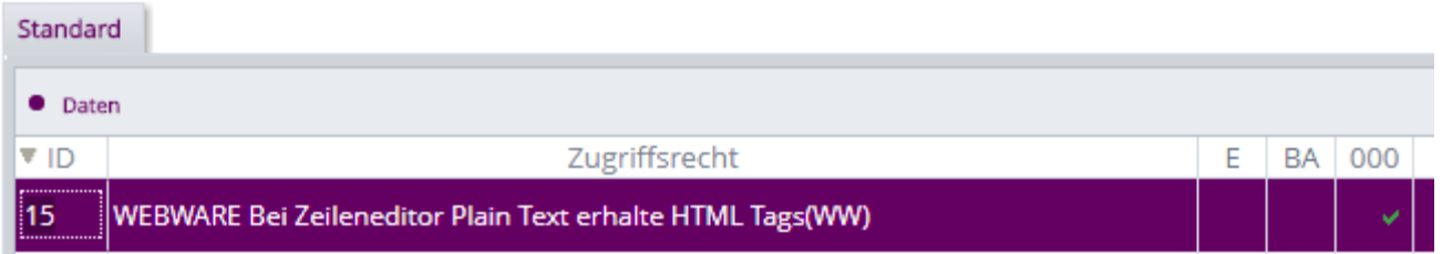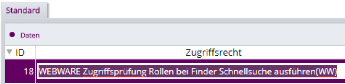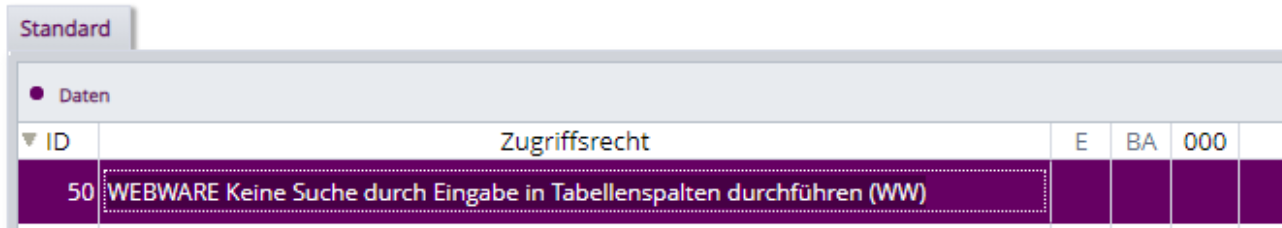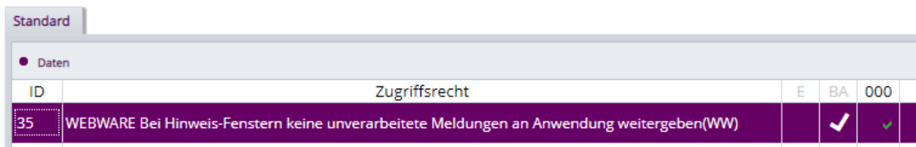 Das Zugriffsrecht WEBWARE_FEHLER, 40 wird im Standard aktiviert ausgeliefert.