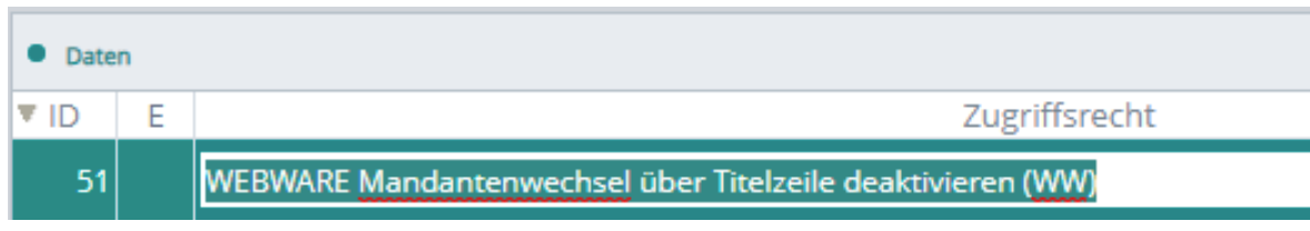 Mit diesem Zugriffsrecht lässt sich der Mandantenwechsel über die Titelzeile deaktivieren.