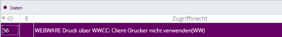 Falls die Drucker, die ein Client (WWCC oder WWZV/WWAPP) zur Verfügung stellt, nicht verwendet werden sollen, so kann mit dem Zugriffsrecht WEBWARE,56 die Verwendung der lokalen Drucker abgeschaltet werden.Â