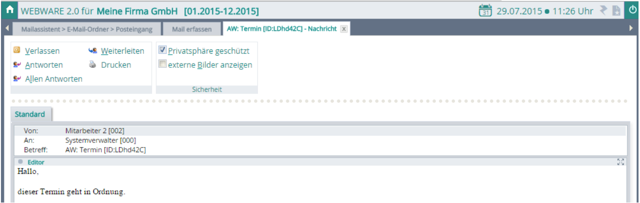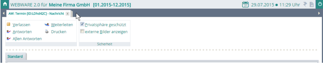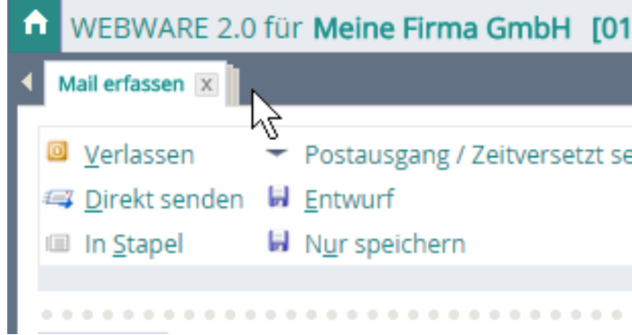Bei Aktivierung von WEBWARE_20, 2Â werden bestehende eMail’s als eigene Karteikarte angezeigt