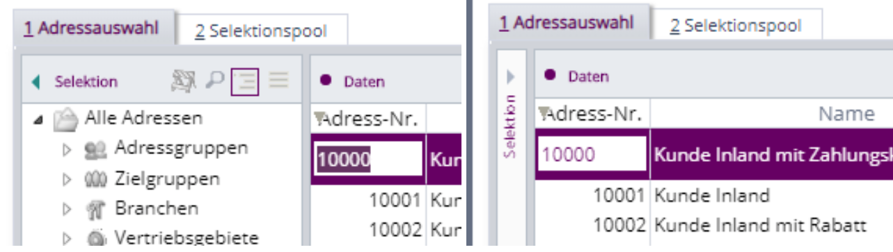 Im Bereich des Adress-Stamms ist es möglich, durch Eingabe in einer Spalte, den Focus der Tabelle direkt auf den nächsten passenden Datensatz zu positionieren.Â