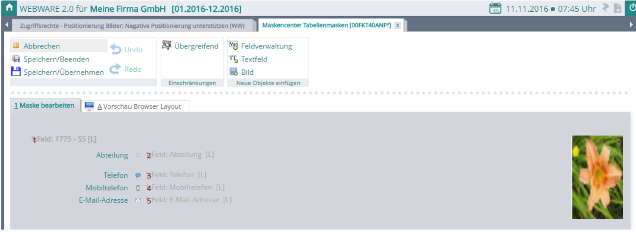 kann eine korrigierte Positionierungsfunktion für den WEBWARE Masken-Designer aktiviert werden.