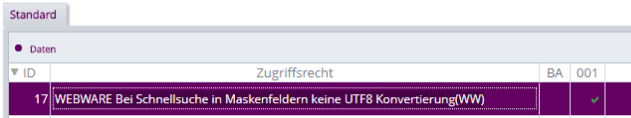 Wenn das unten angeführte Zugriffsrecht aktiviert ist, kam es zu dem Problem, dass bei einem Feld-Wechsel mit einem Feld, das manuell per „U8:“ als UTF-8 markiert ist, der Inhalt zerstört wurde.