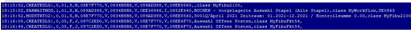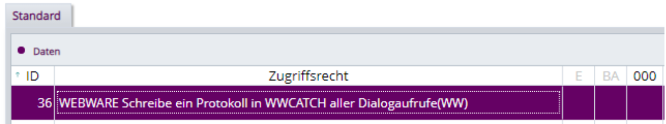 Mit dem Zugriffsrecht WEBWARE_FEHLER,36 kann man eine Log-Funktion aktivieren, die für die aktuelle Sitzung eine Datei in den Ordner APP\WWCATCH\DAILST_[Sitzungs-Nummer]_[Benutzer-Nummer]_[Public-User-Nummer].csv schreibt. Mit dieser Datei können Programmabläufe in der WEBWARE besser nachvollzogen werden.Â