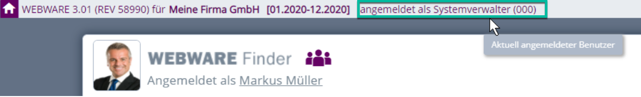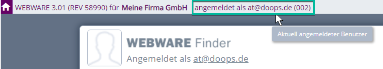 Ist dieses Zugriffsrecht aktiviert (Im Standard aus), dann wird der aktuell angemeldete Benutzer/Public-Worker mit BüroWARE Anmelde-Nummer im Titel der Anwendung dauerhaft angezeigt.Â