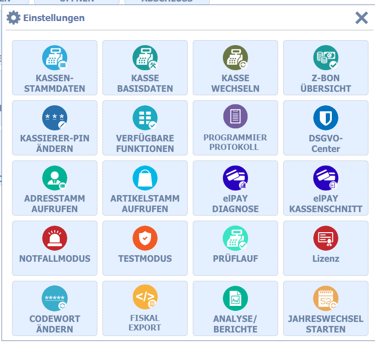 Wenn das Zugriffsrecht aktiviert ist, hat ein Standardbediener an der Kasse vollen Zugriff auf das Einstellungen-Menü