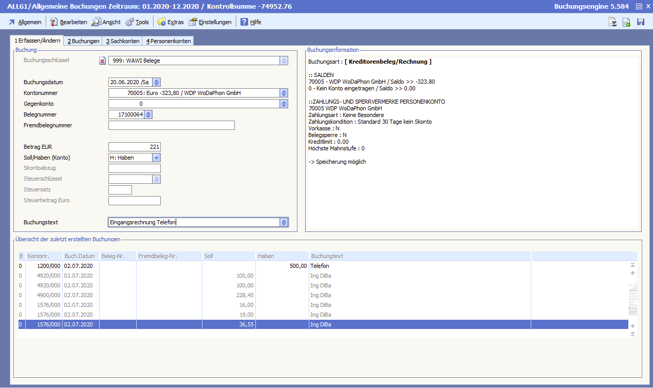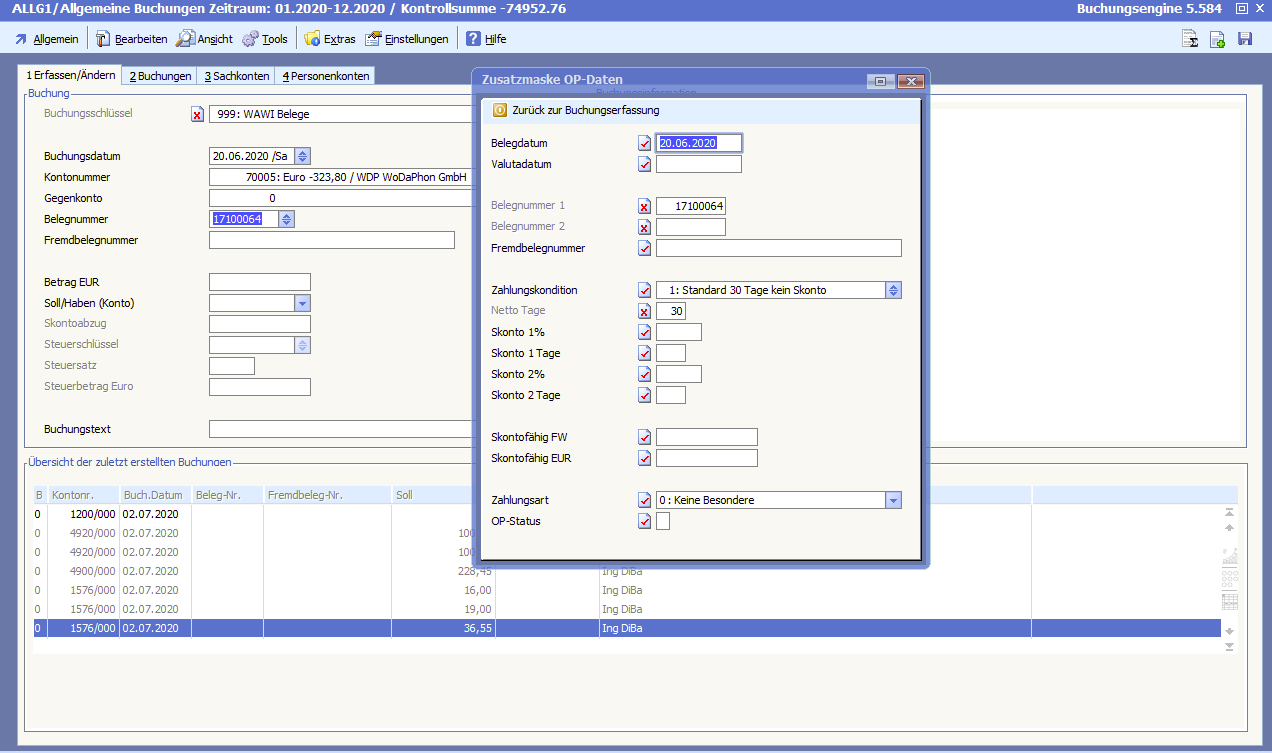 Belegdatum und Buchungsdatum sind 20.06.2020