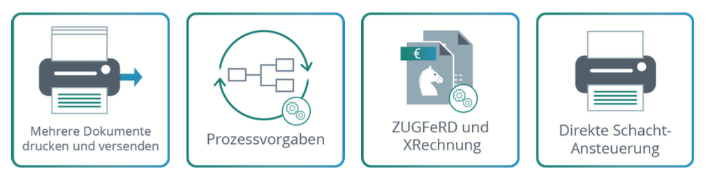 Ein komplett neues Modul, welches die Definition und Anwendung von physikalischen Druckern, Formularen, Listen und anderen Ausgabeobjekten in einer einzigartigen Oberfläche ermöglicht und mit vorgangsbezogenen Ausgabeprozessen die Softwareanwendung wesentlich beschleunigt und vereinfacht.