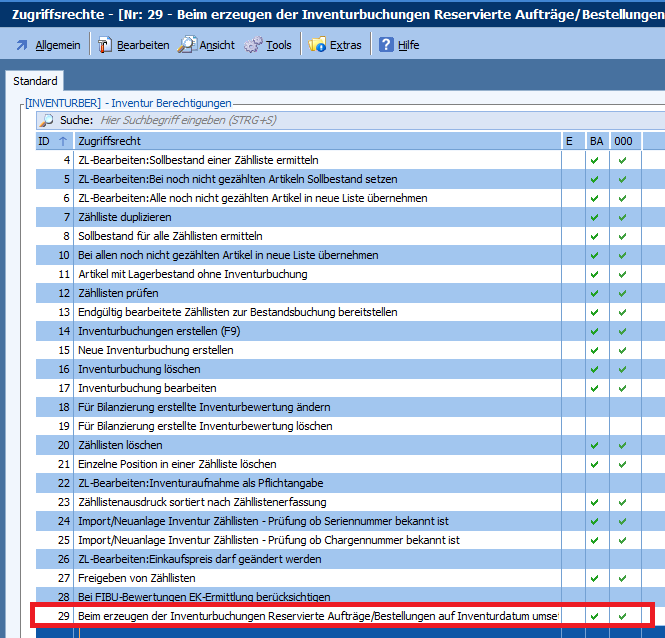 Mit dieser Programmänderung steht ein neues Zugriffsrecht für Inventurberechtigungen zur Verfügung, welches standardmäßig aktiviert ist: