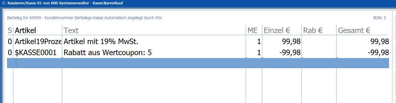 Mit dieser Programmänderung ist es möglich, einen Coupon mit Restwert auszudrucken, wenn der eingelöste Coupon als Belegposition hinterlegt (POS_2541_1=“J“ und POS_2407_10 = Wertcoupon-Index) ist.