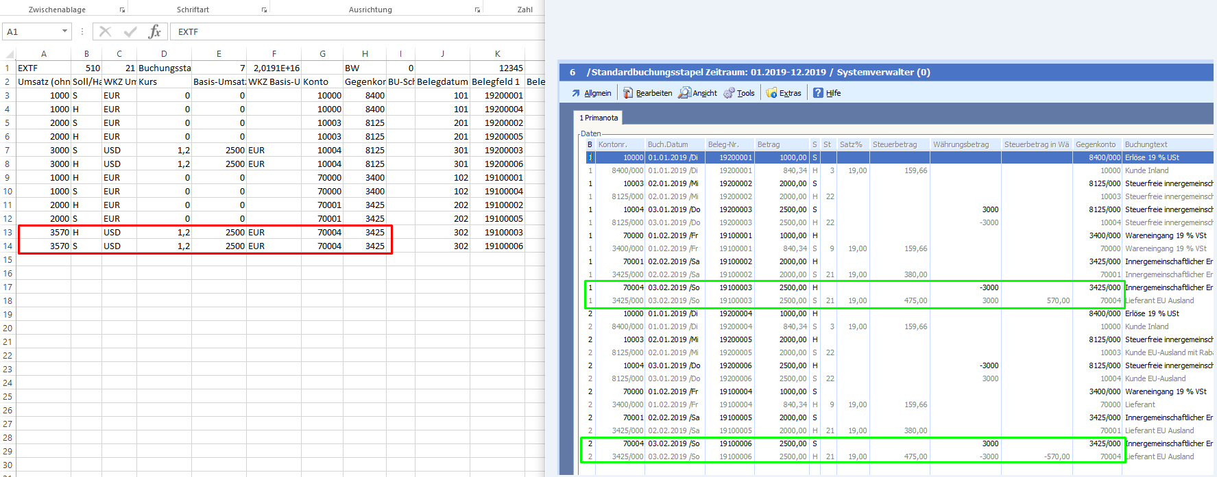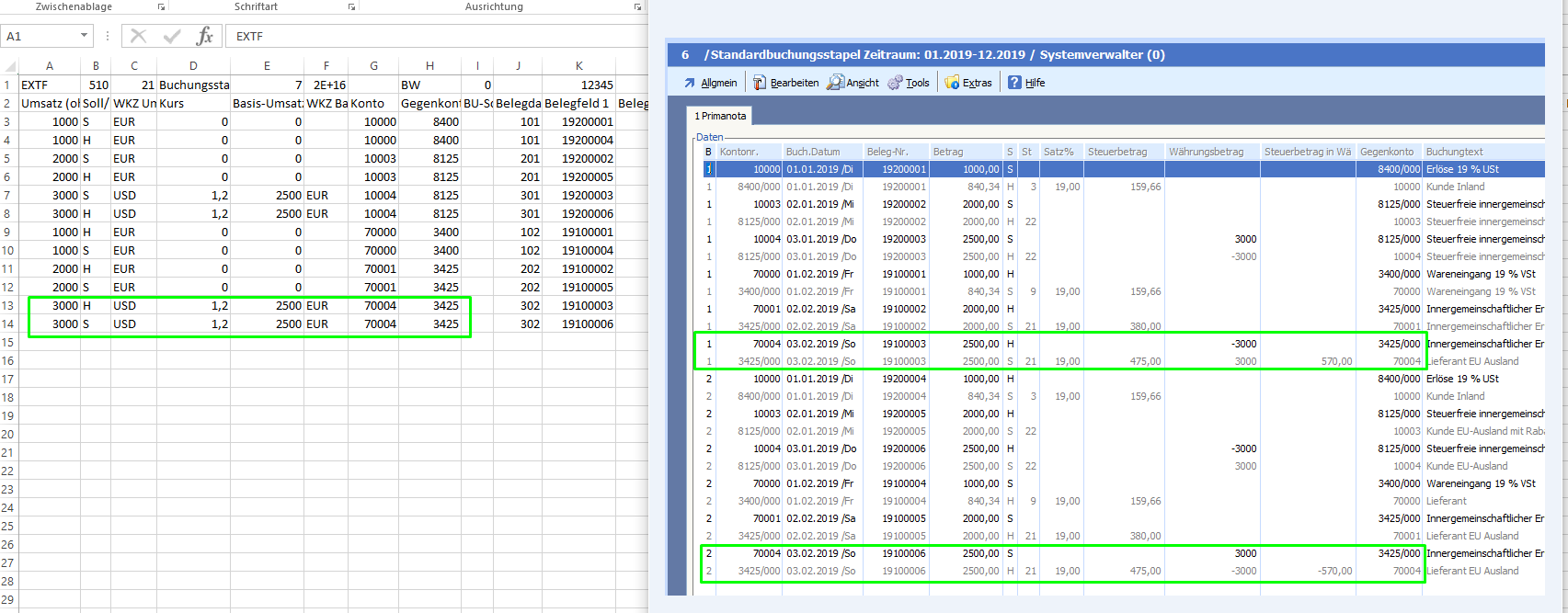 Falscher Währungsbetrag kommt in Datev an: 19431,59,-