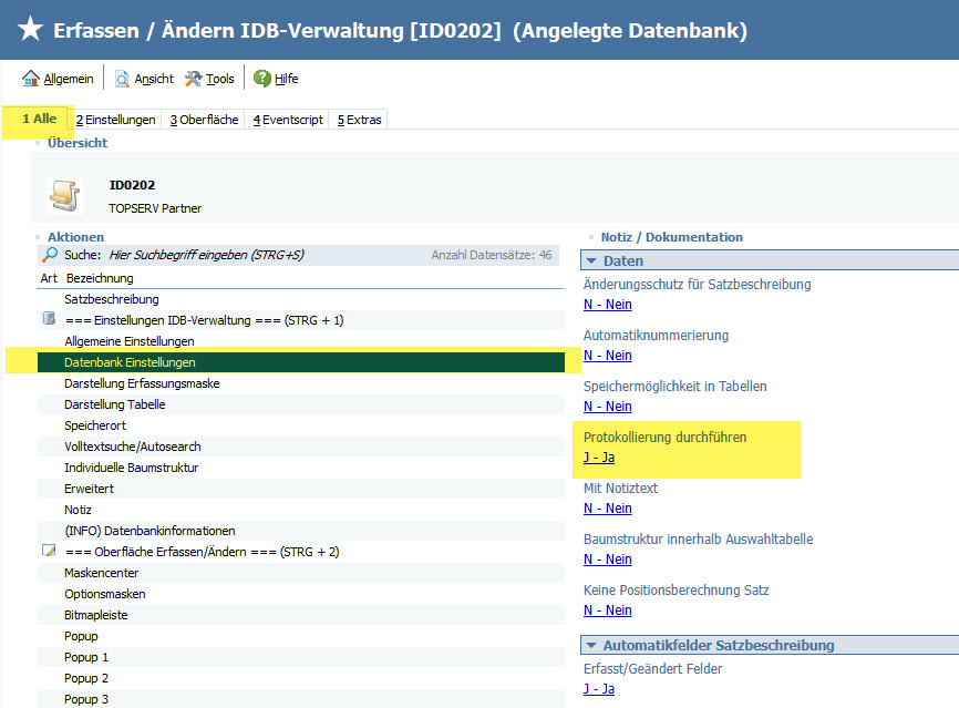 [BWPROT, Nr: 10000 - Einstellungen Protokollierung IDB (V53), Erweiterte Feldprotokollierung in IDB_SE0061]