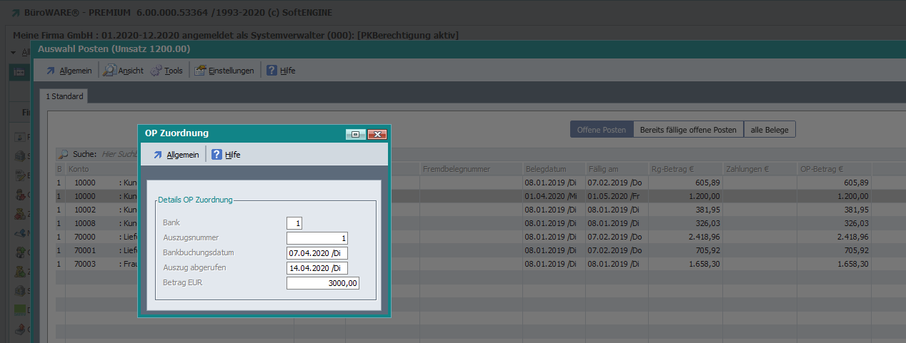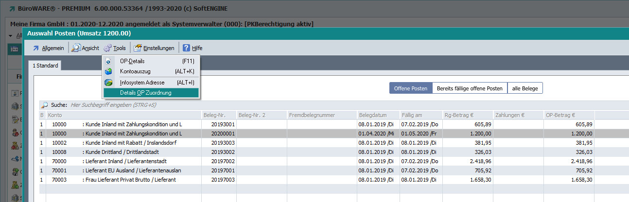 So sieht die Buchung aus, wenn der Zahlbetrag für den OP-Ausgleich nicht ausreichend ist. …