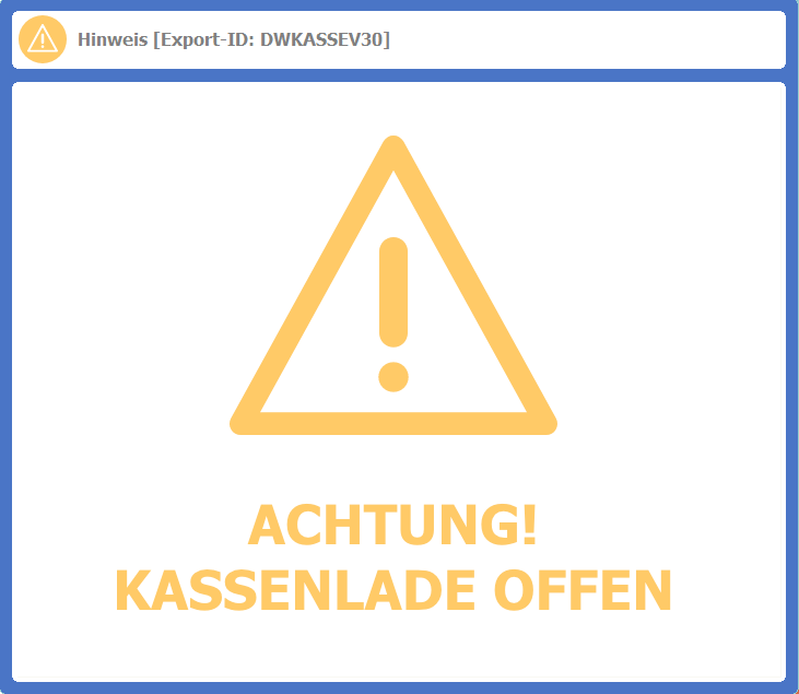 Wenn nach dem Abschluss des Kassiervorgangs immer noch die Lade offen ist, wird ein entsprechender Hinweis angezeigt.