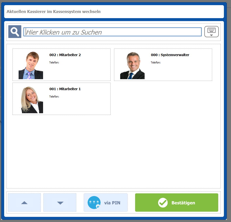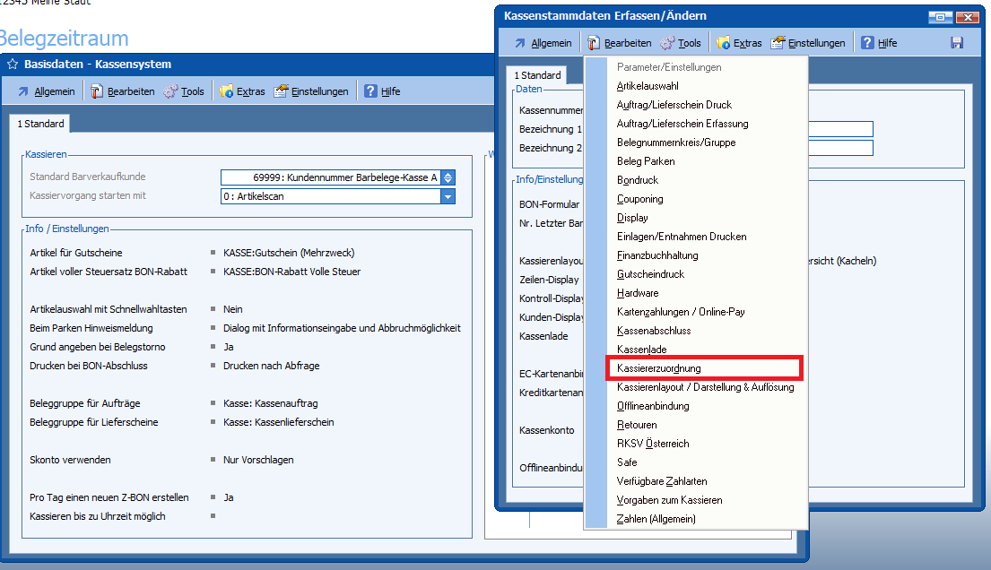Kasse 4.1 – Kassenstammdaten, Kassiererauswahl