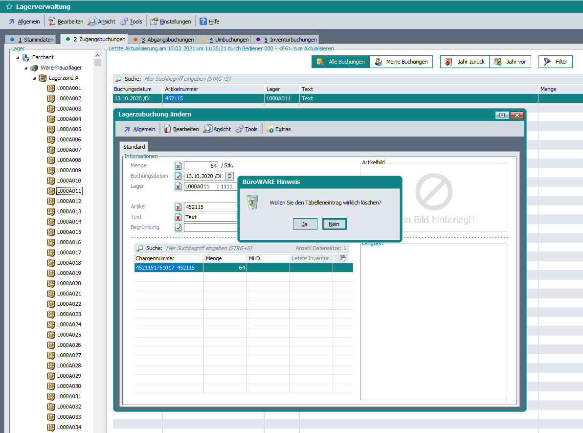 Ab den Revisionen 62194-Beta und 62341-Patch können in der neuen Lagerverwaltung Buchungen nun manuell gelöscht werden.
