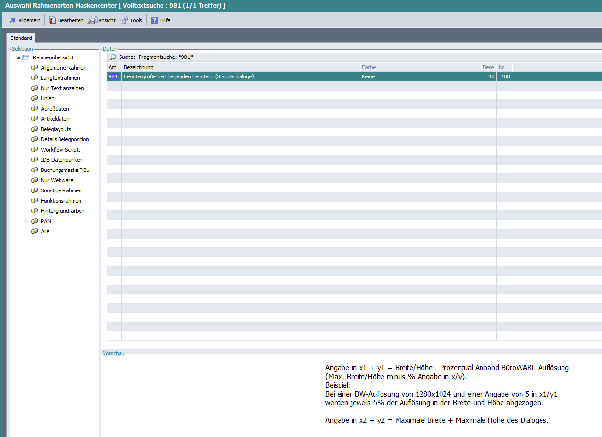 Ab Revision 57135 lassen sich mit Rahmenart 981 dynamische Fenstergrössen in X1/y1 X2/Y2 angeben.