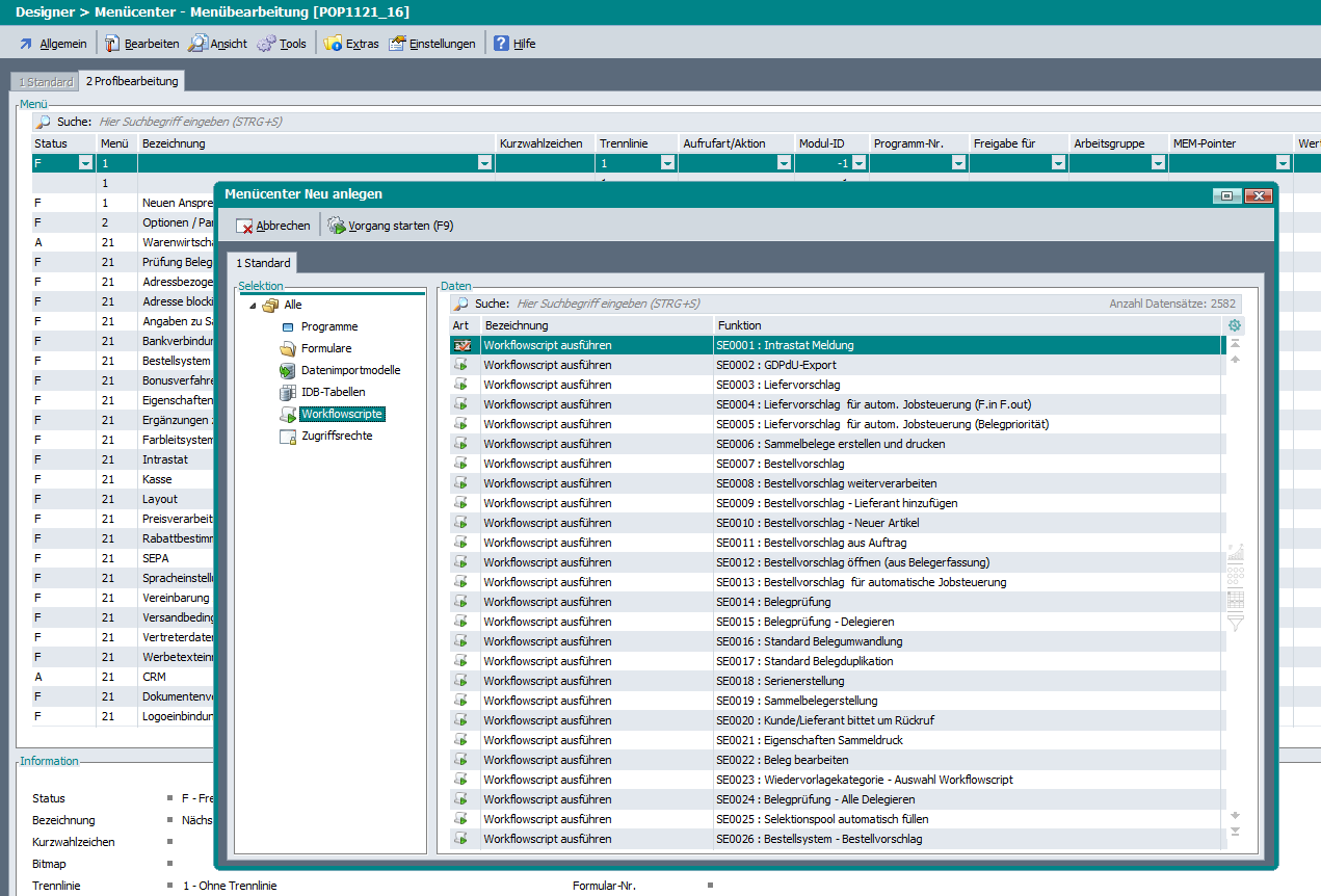 Im Menuedesigner bei der Anlage eines neuen Menuepunkts, kann nun in einer neuen Tabelle schnell über alle Datenbereiche gesucht werden.