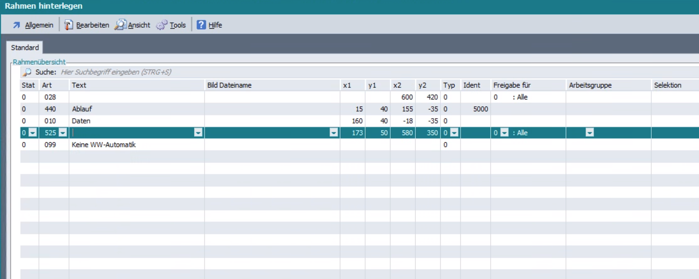 Bis jetzt konnte man den Langtext dazu nur in der Rahmenverwaltung > Cursor auf Rahmen > F11 erfassen.