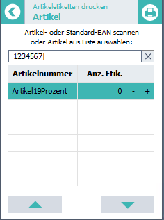 MDE Modul Art.-Etiketten > Artikelnummer scannen/eingeben