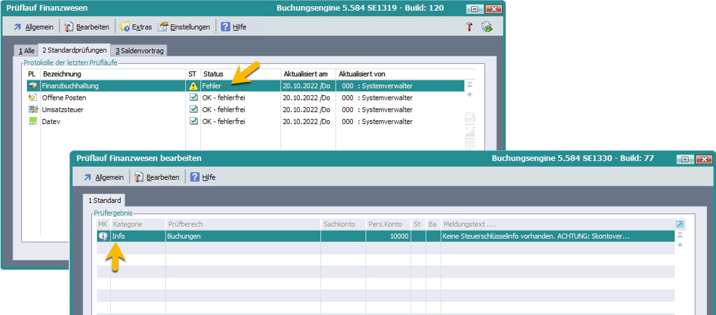Der Prüflauf meldete jedoch diese Buchungen als Fehler/Hinweis.