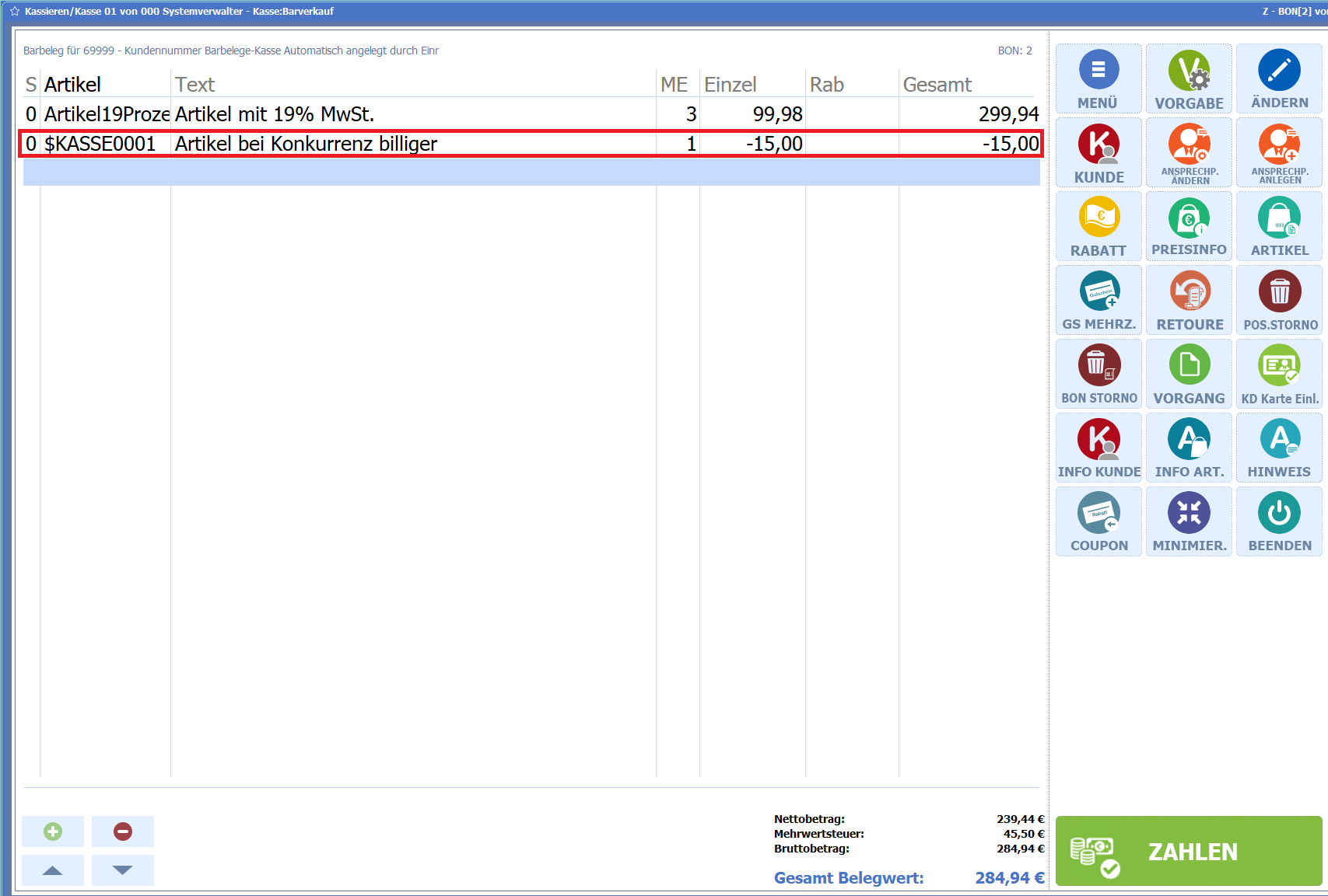 Es ist nun möglich, dass einer Position im Beleg ein Rabatt gewährt werden kann, auch wenn der Artikel nicht rabattfähig ist.