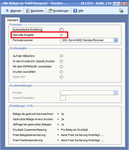 Wenn Sie dort einen Vorschlag hinterlegt haben, wird dieser bei der Sammelbelegerstellung im Selektionspool automatisch vorgeschlagen.