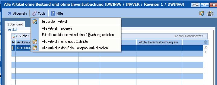 Mit dieser Programmänderung steht Ihnen in der Inventur (nach Migration) ein neues Tool zur Verfügung. Mit diesem Werkzeug finden Sie alle Artikel, die keinen Bestand und keine Inventurbuchung haben. Diese Möglichkeit steht Ihnen auf der Karteikarte „Erstellte Buchungen“ zur Verfügung.