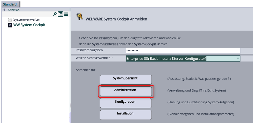 Wie kann ich das WW-System-Cockpit aufrufen ?