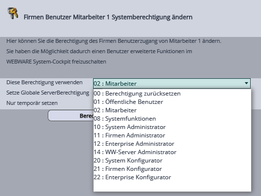 Die höchste Berechtigung für einen Mitarbeiter ist die Berechtigung 22:Enterprise Konfigurator. …