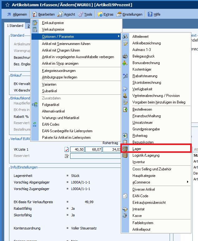 Das Flag finden Sie auf der Optionsmaske „Lager“ unter den Optionen/Parameter im Artikelstamm.