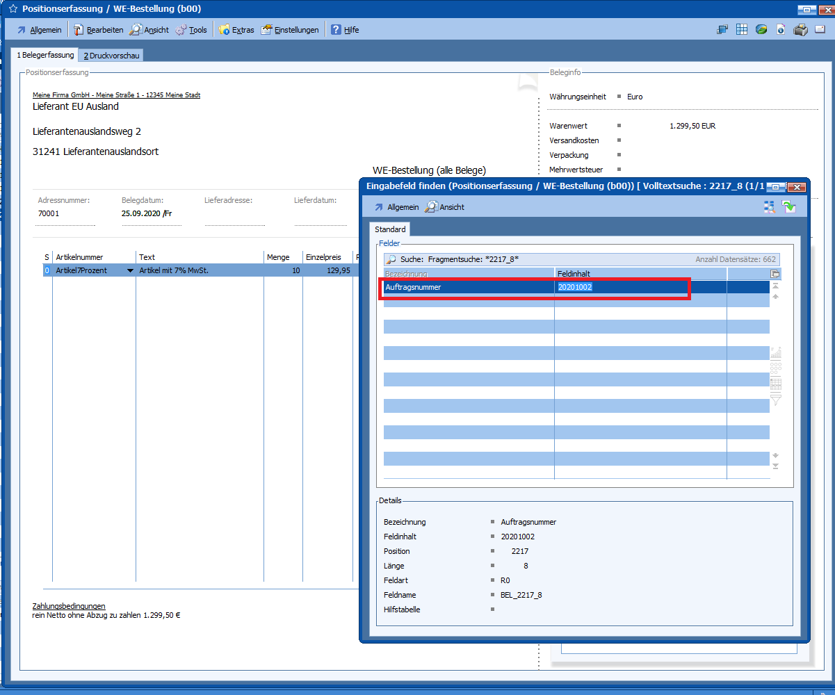 Wenn eine auftragsbezogene Bestellung erzeugt wird, wird die Belegnummer aus dem Feld IBSE0270_290_11 (Belegindex Auftrag bei auftragsbez. Best) in das Feld BEL_2217_8 (Auftragsnummer) übernommen.