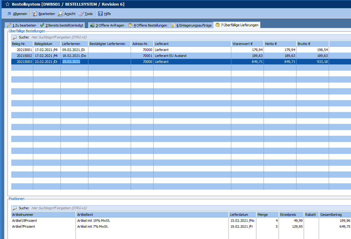 Mit dieser Programmänderung erhalten Sie in WE-Bestellungen, die mit dem auftragsbezogenen Bestellwesen erzeugt wurden, Zugriff auf die Belegnummer des zugehörigen WA-Auftrags.
