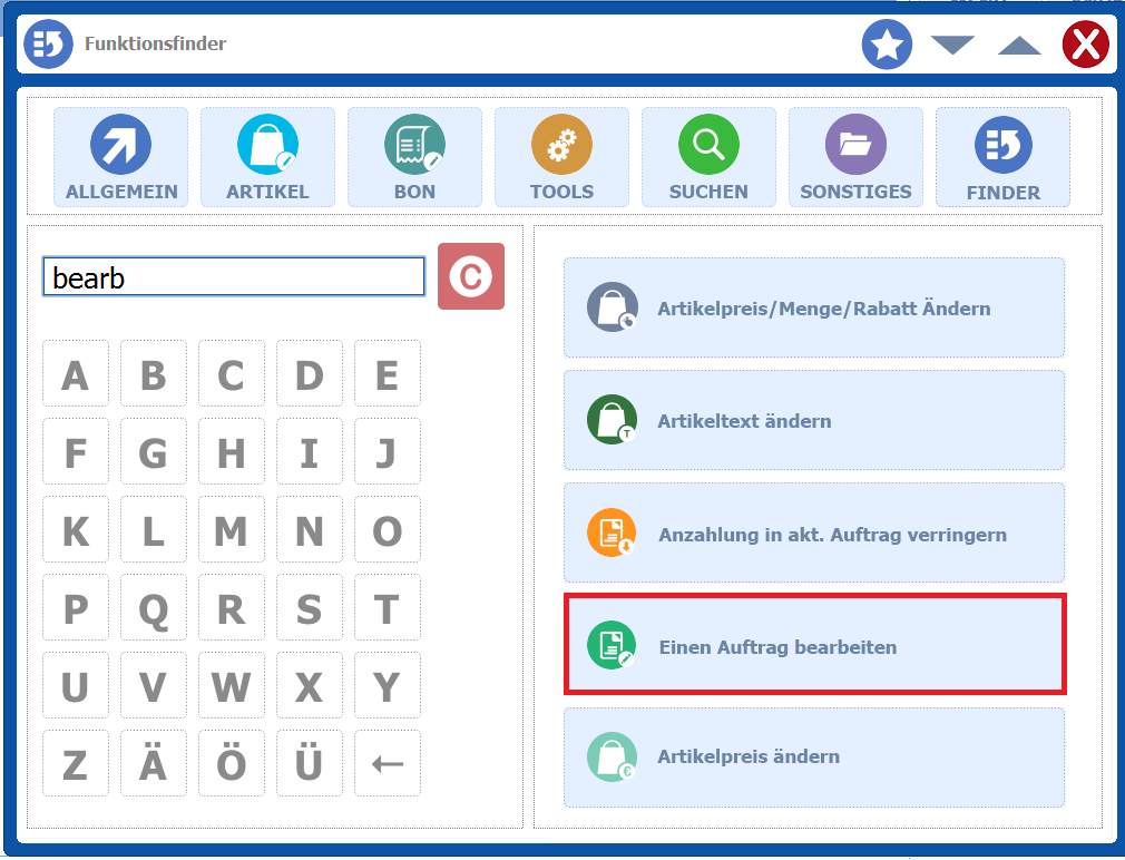 Mit dieser Programmänderung gibt es ein neues Tool, mit dem man die Anzahlung des aktuellen Auftrags in der Kasse verringern kann. Das Tool „Anzahlung in aktuellem Auftrag verringern“ findet man im Finder der Kasse.