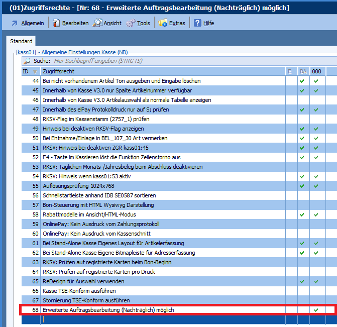 Mit dieser Programmänderung gibt es in den Berechtigungen für die Kasse das neue Zugriffsrecht