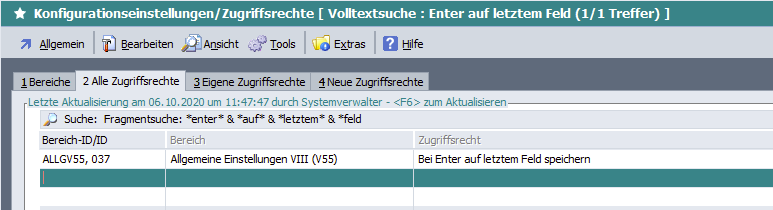 Dieses Zugriffsrecht (ZGR) ist sowohl nach einem Update als auch bei Neuinstallationen standardmäßig aktiviert.