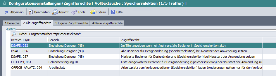 In der Zugriffsrechte – Vergleichsanalyse ist es nun möglich, eine spezielle Suche zu starten, die dabei hilft, ein Zugriffsrecht zu finden, welches für ein Fehlverhalten zuständig ist.