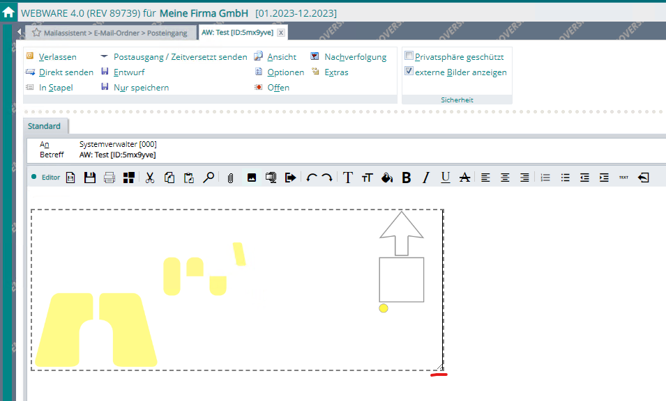 Ab der Revision IC/88089 gibt es eine neue Funktion innerhalb der WebUI, um vorhandene Bilder in einer E-Mail zu skalieren.